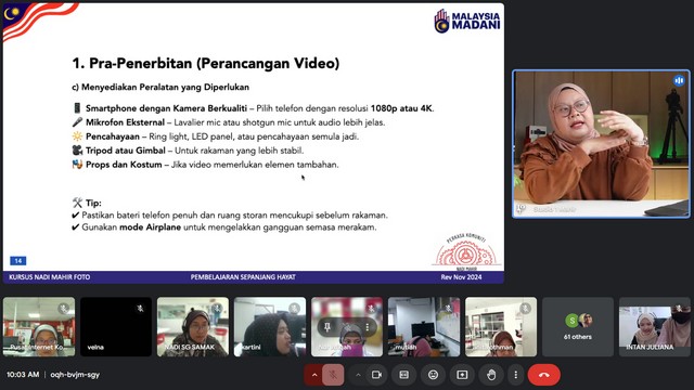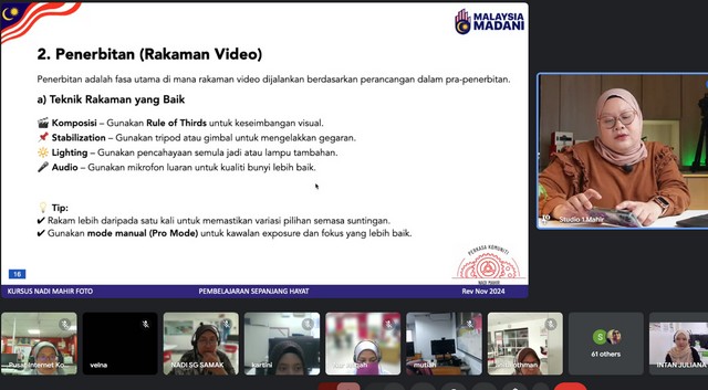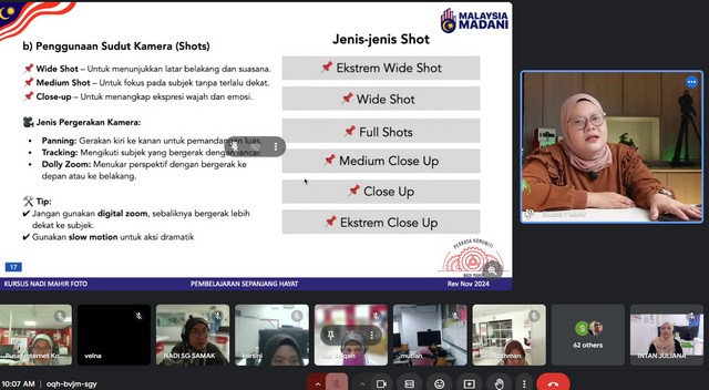 Sepanjang kelas ini berlangsung, guru MAHIR menerangkan teknik komposisi dalam videografi, camera movement, audio recording dan guru MAHIR menerangkan mengenai penerbitan.