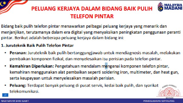 Bengkel E-Rezeki di Program Literasi Komputer dan Usahawan Giatmara Kangar Kursus Celular Phone Repair (CLP)